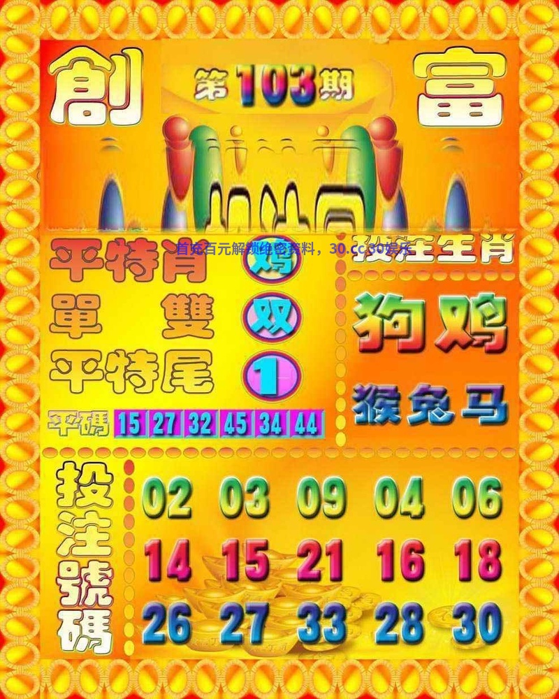 103期:天地两肖【天肖+羊鼠】开:牛41准 |