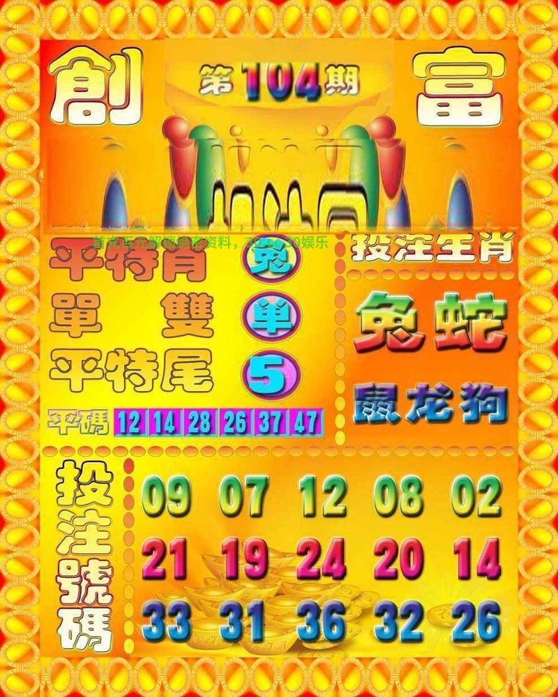 104期:天地两肖【天肖+蛇虎】开:狗32错 |