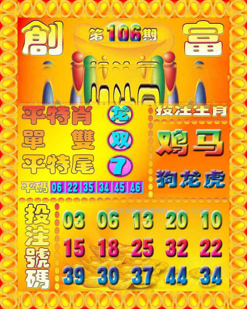 106期:天地两肖【地肖+猴兔】开:猪43错 |